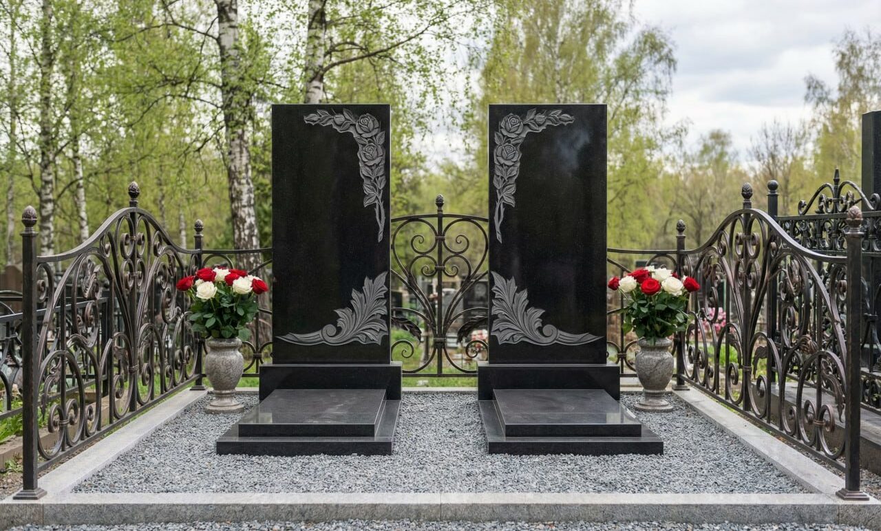 Гранитные и мраморные памятники, кованые ограды — ритуальные услуги по благоустройству захоронений в Минске. Фотоотчёт о работе.